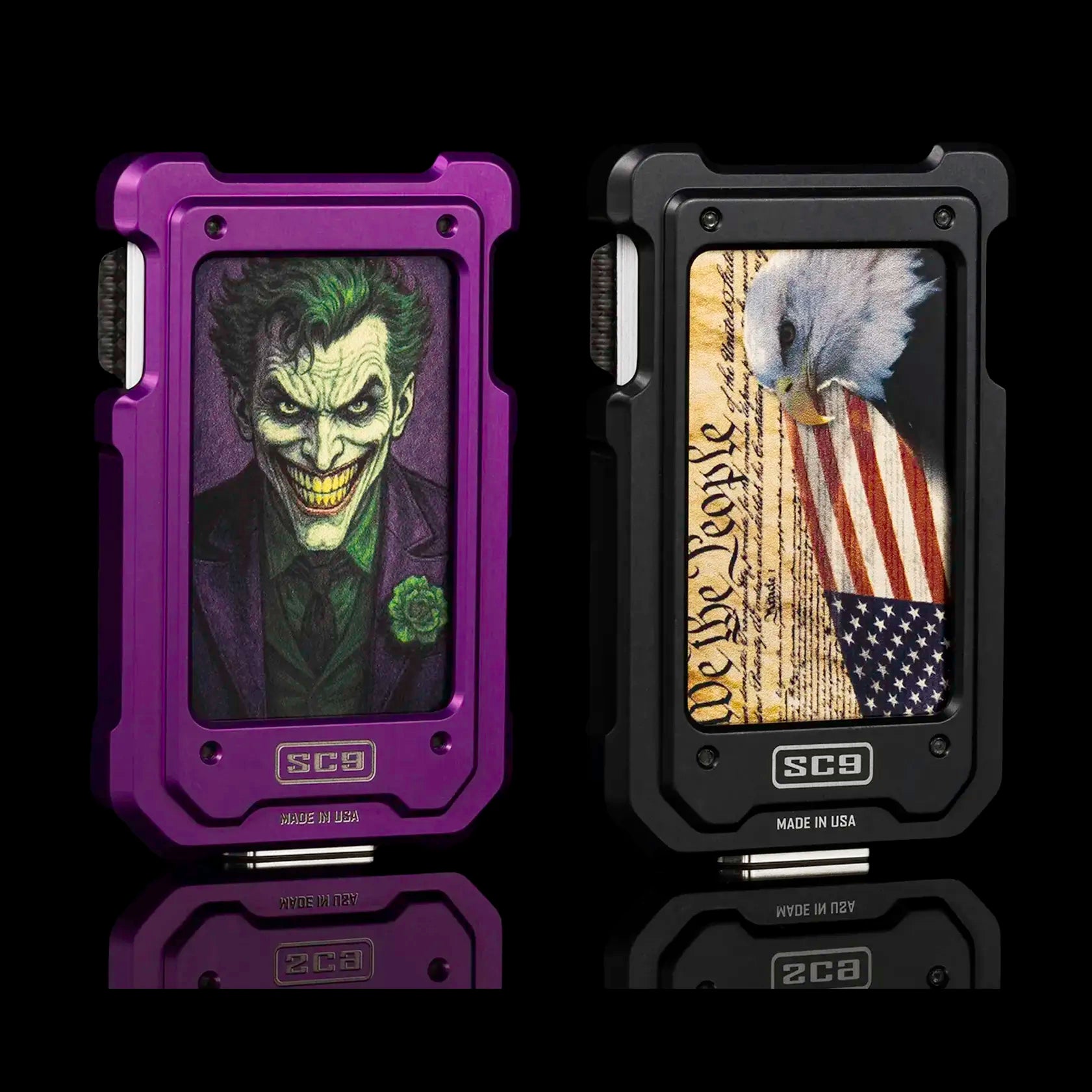 Each piece is crafted through our proprietary Permodize process—fusing color into the metal itself for unmatched depth, durability, and permanence. From the We The People edition, honoring American craftsmanship and freedom, to the Joker edition’s bold, wet-candy metallic glow, every wallet embodies pure precision—no paint, no coating, no compromise.