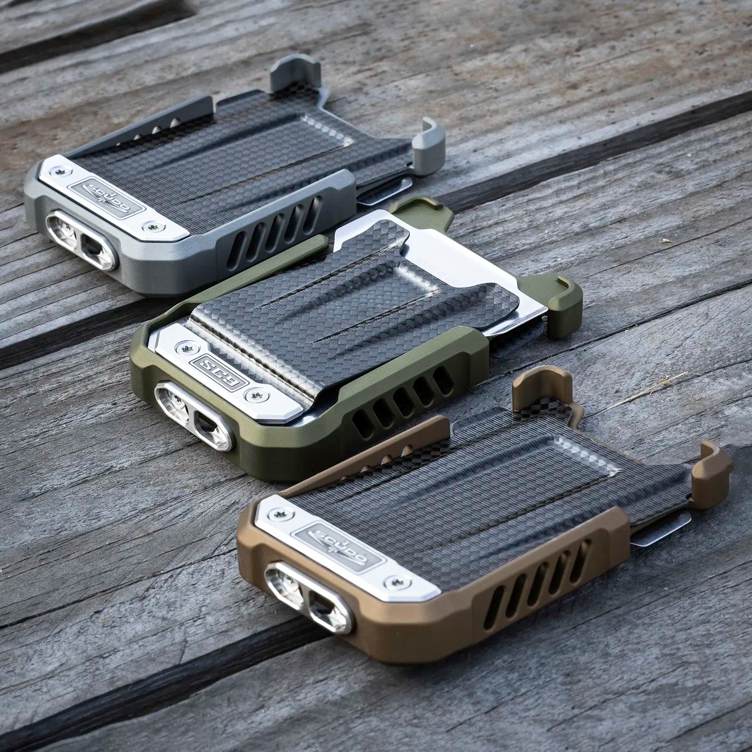 The SC9 Tactical Series blends battlefield-grade durability with modern sophistication, delivering a slim, precision-engineered wallet built from aerospace aluminum and finished in rugged tactical tones for those who demand performance and style in every environment.