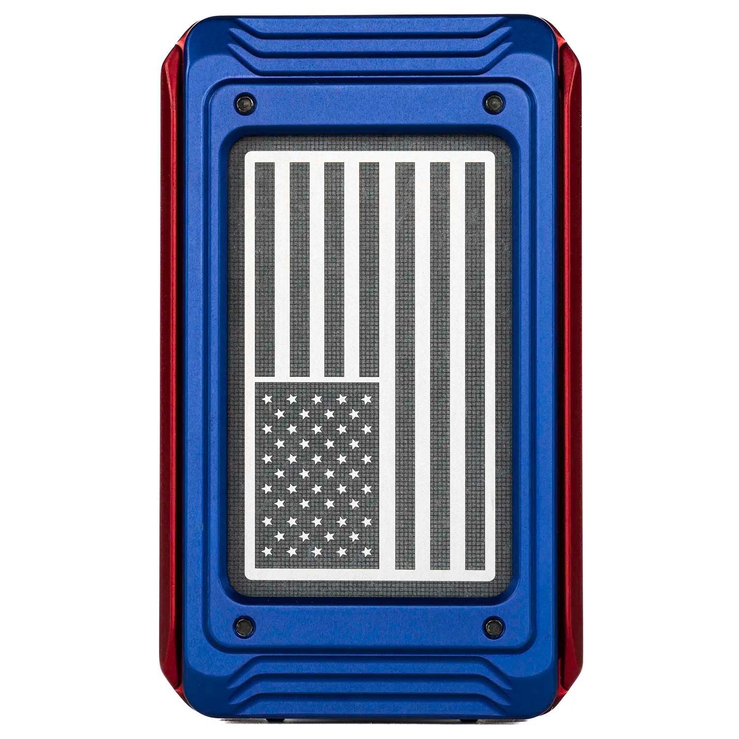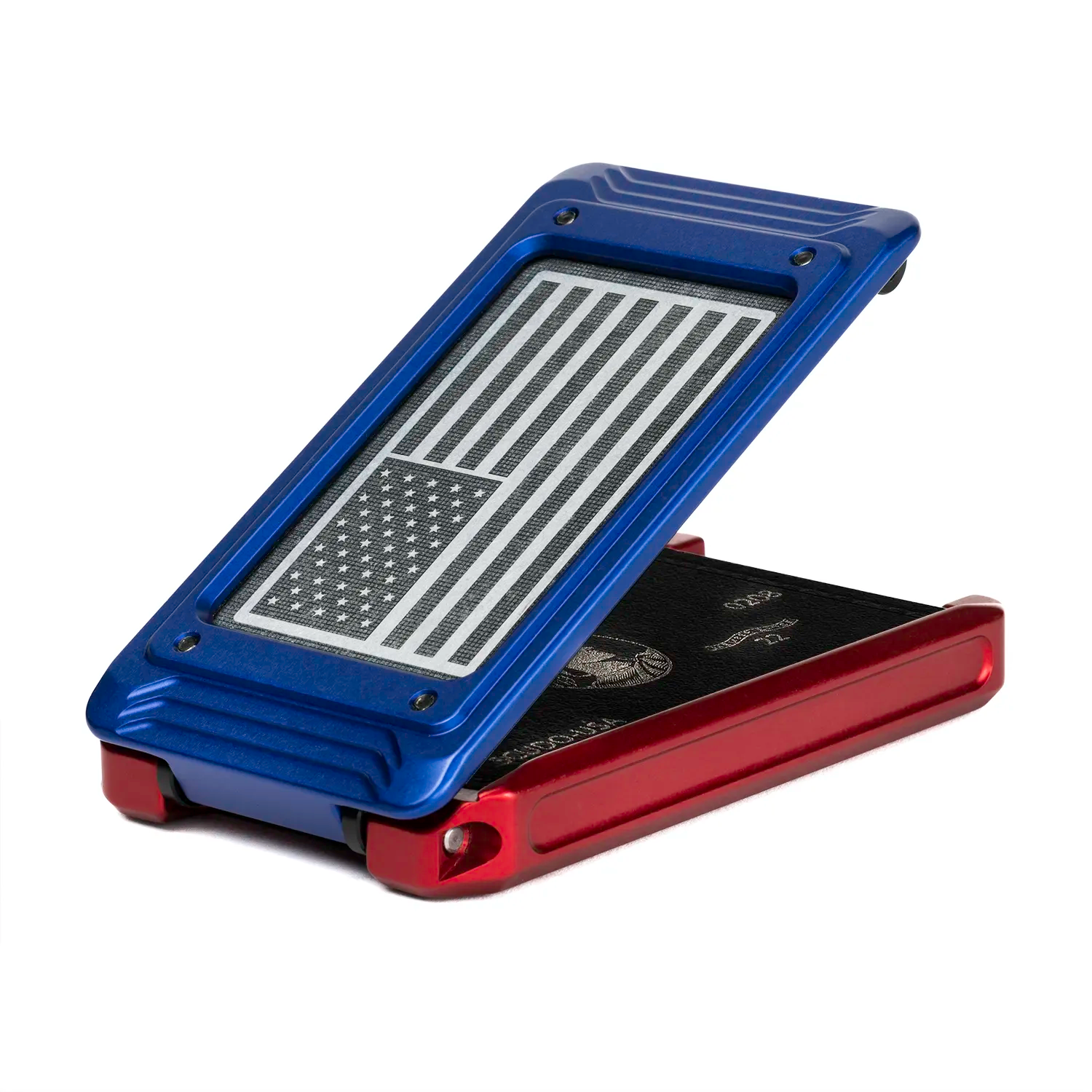 Special Patriot Series featuring a red anodized base and blue anodized switch lid.